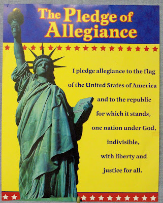 Then there are nice, big posters. I was happy to find this Pledge of Allegiance poster last year, since we do that in our homeschool. (I realize not everyone does.) I'm pretty sure I saw one as a banner this year, but it sold pretty fast around here.